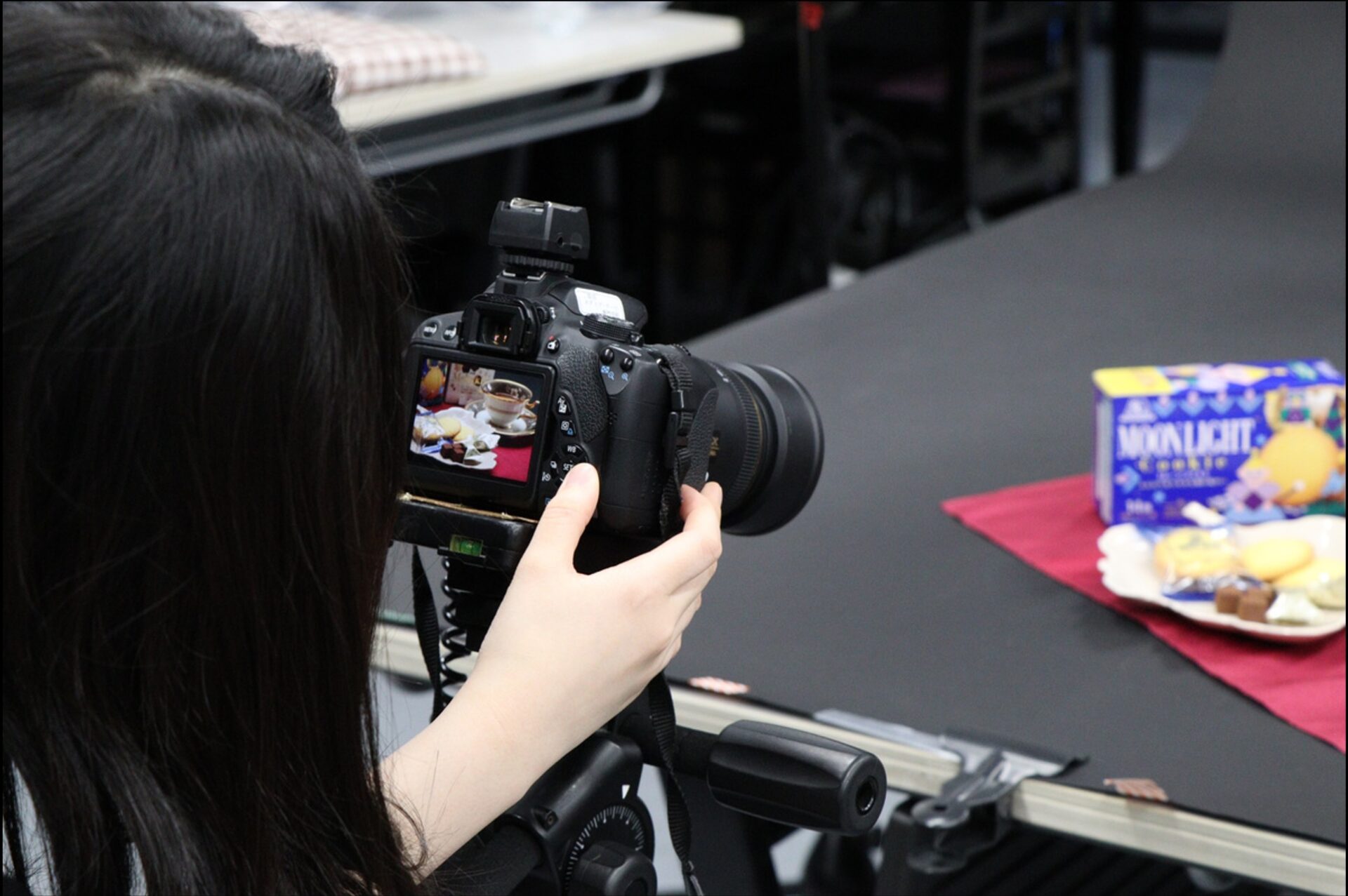 一眼レフカメラの基本的な使い方から、商品撮影、ポートレート、照明機材を使ったスタジオ撮影まで幅広く学びます。